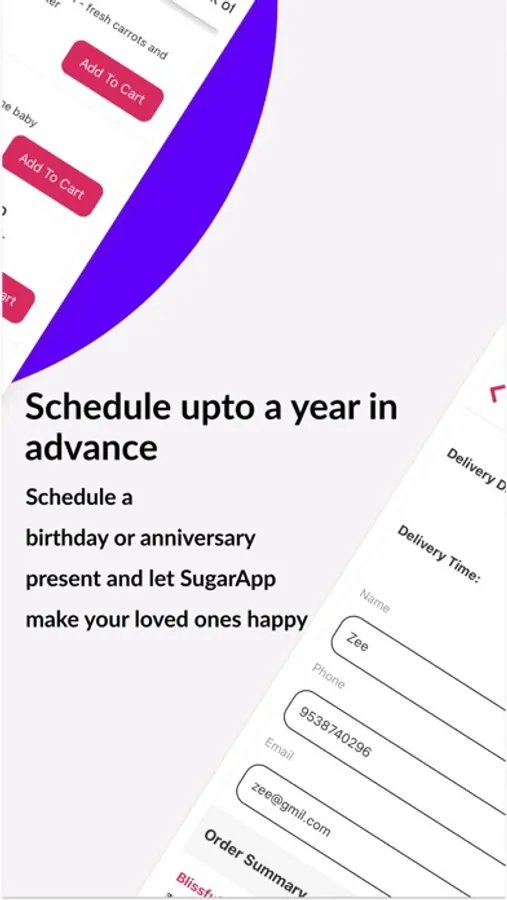 Remember the last time you forgot your anniversary? With SugarApp, you can schedule a gift for your loved ones and special occasions and SugarApp will get it delivered for you on time!