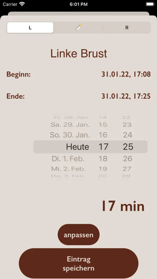 Außerdem kannst Du auch Mahlzeiten aus dem Fläschchen eintragen.