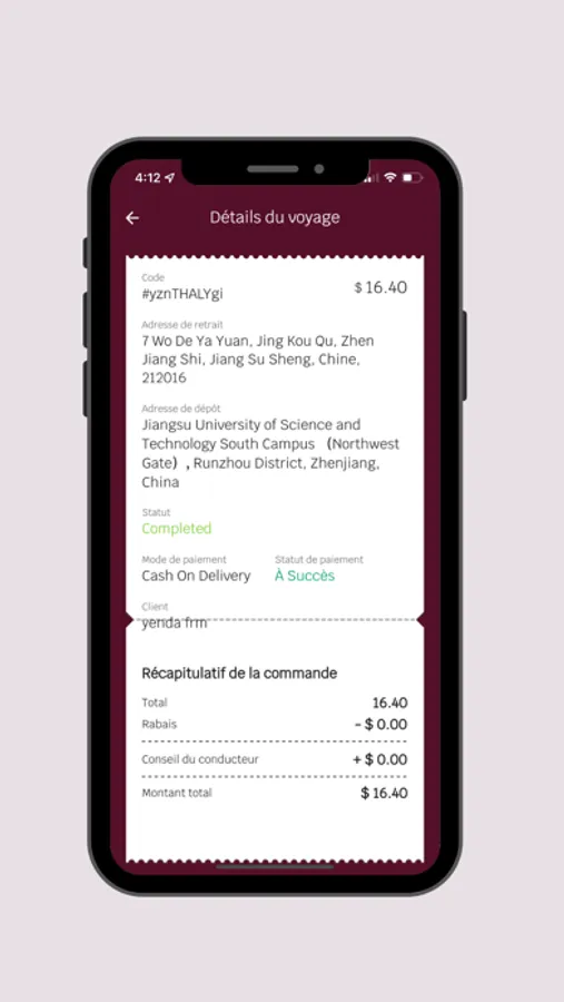 Votre trajet, votre ville : Toutes les livraisons seront effectuées dans les limites de la ville.