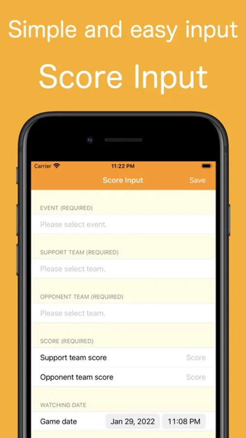 Only events, teams, scores and match dates are recorded so it's easy to enter.