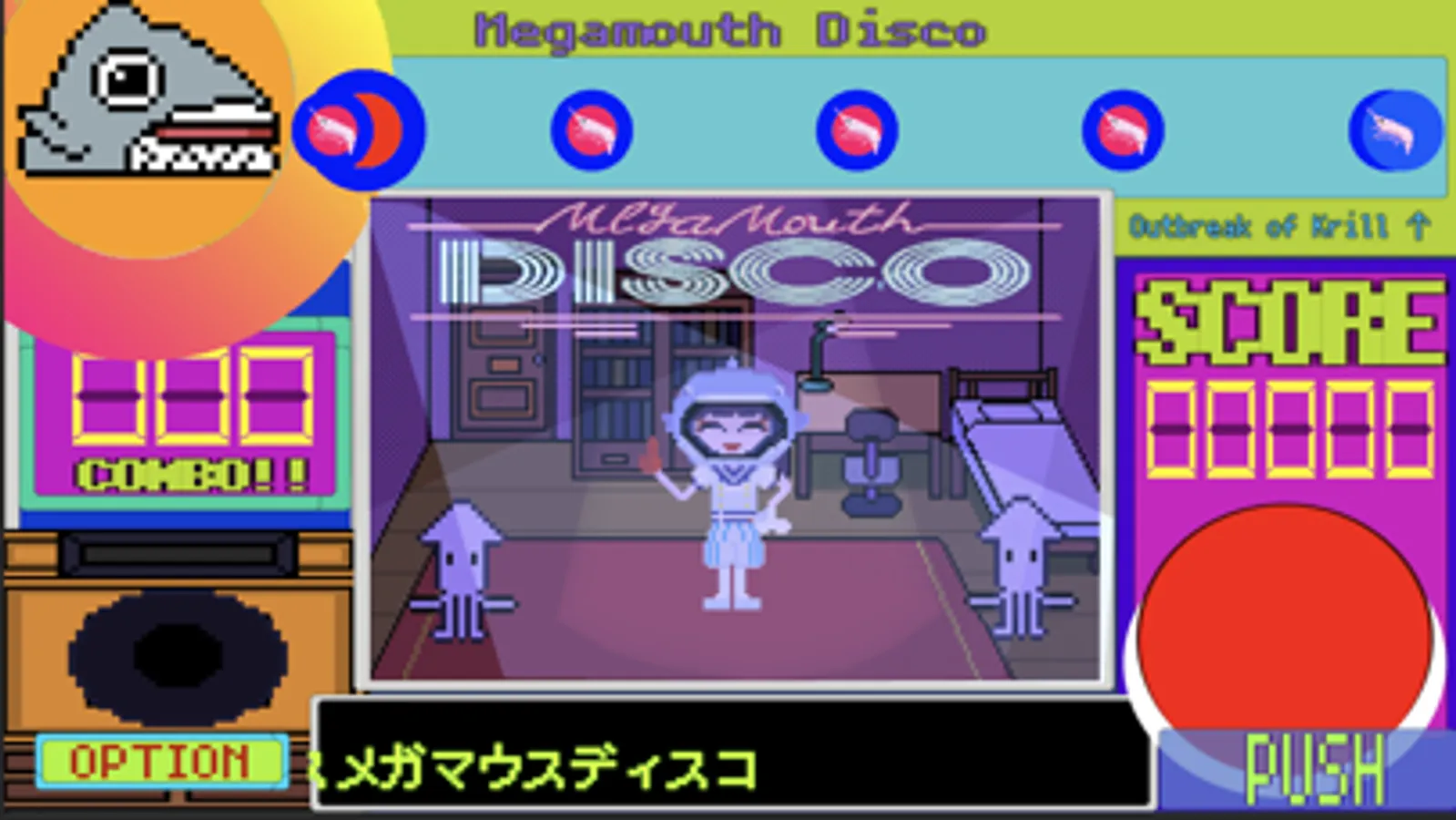 流れてくるオキアミをいいタイミングでスペースキーを押してメガマウスくんに食べさせてあげよう!!