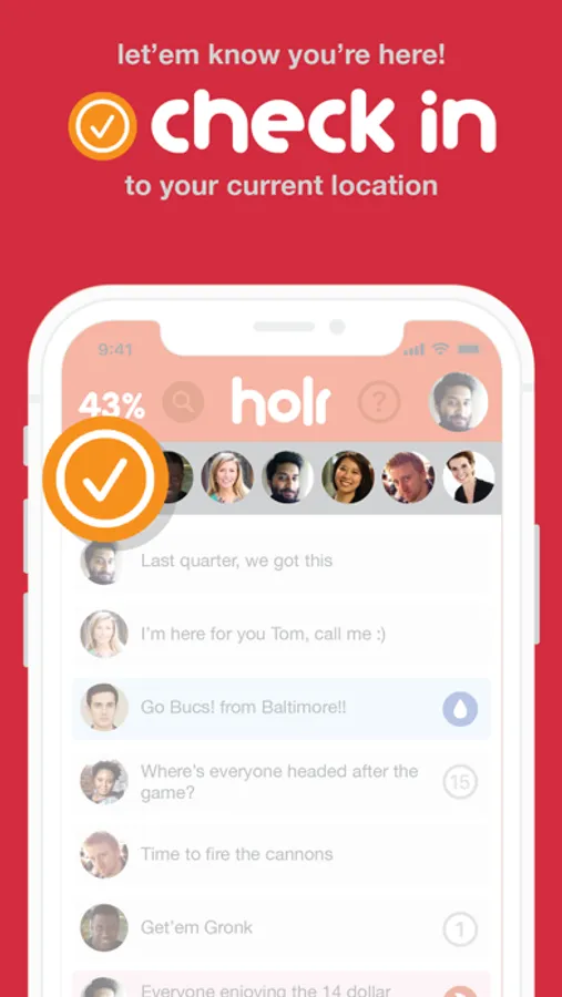 And that's not all, our latest feature lets you keep a tab on your favorite holr users. Add up to 20 users to your Favorites list and never miss their check-ins or dropped messages. With holr, staying connected is just a tap away!