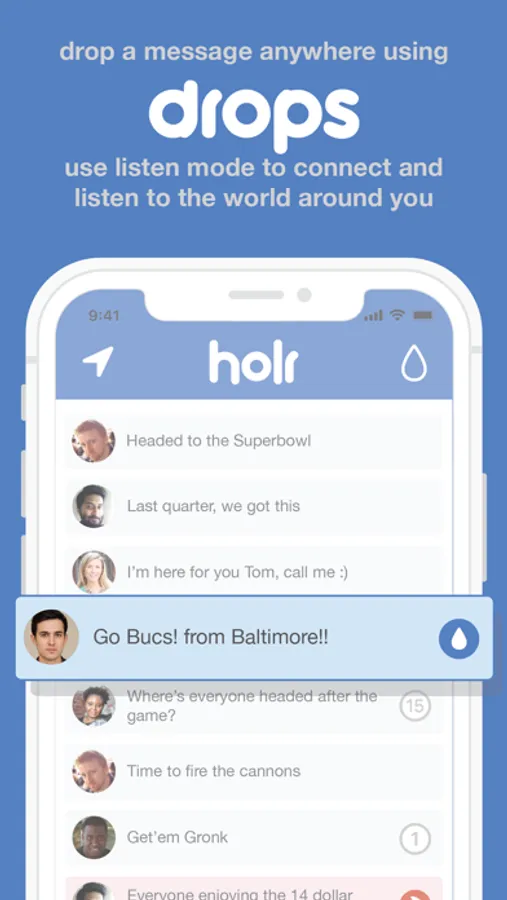 Longing to listen in on other corners of the globe? holr has got you covered. Peek into any place in the world with our 'Eavesdrop' feature. Tap the magnifying glass, slide the map, and immerse yourself in global conversations. Even better, 'drop' messages to different places and let your voice transcend borders!