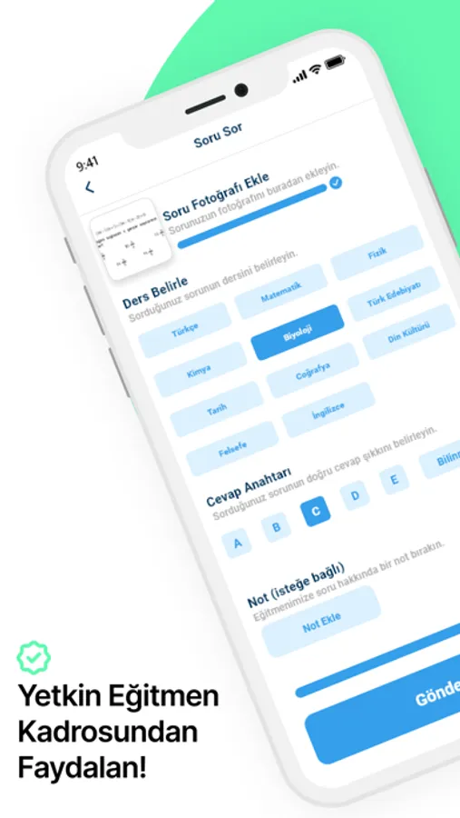 Her dersten soru sorma imkanı: Çöz Gönder'de YKS, LGS, TYT, AYT, YDT, KPSS, LGS müfredatları içinde tüm sorularını sorabilirsin. Soru sor tüm soruların profesyonel, diplomalı ve en kaliteli öğretmenler tarafından 30 dakika içinde detaylı olarak çözülsün ve soru çözümü cebine gelsin. Çözümde anlamadığın kısımlar olursa dert etme eğitmenlerimiz ile birebir iletişime geçerek çözüm sonrası destek alabilirsin.