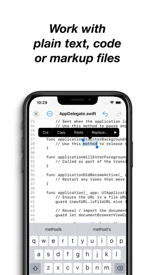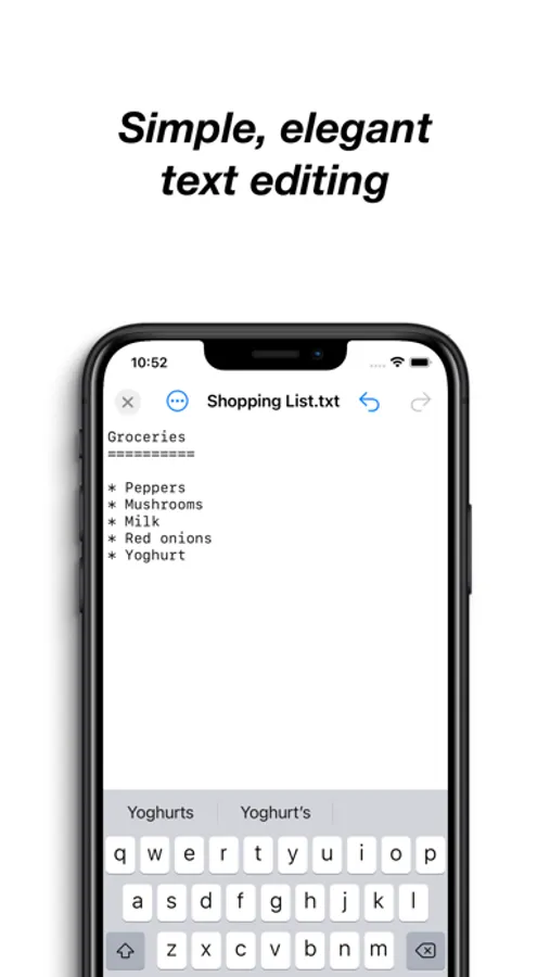 Create or edit files directly on your device or in iCloud, with no need to import or export.