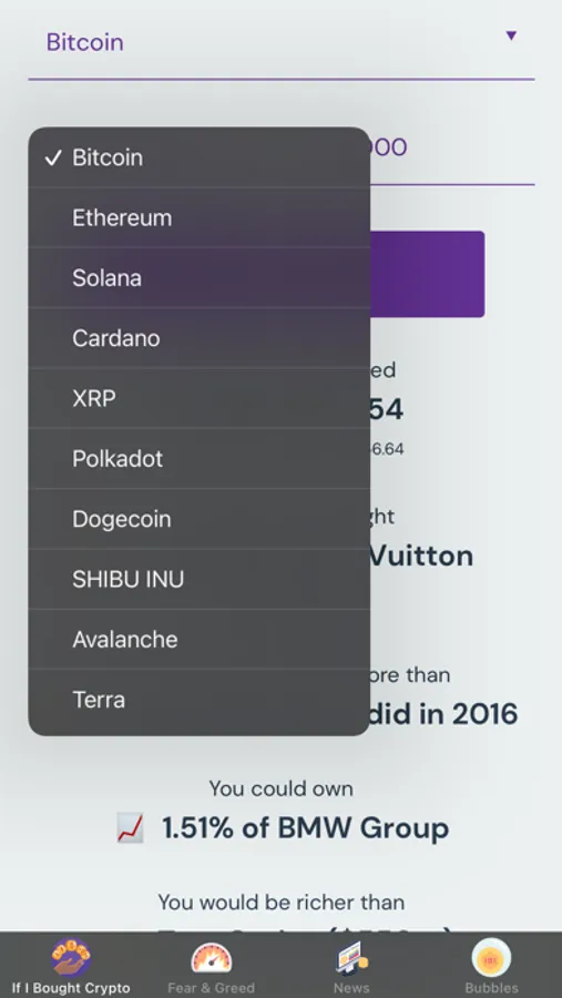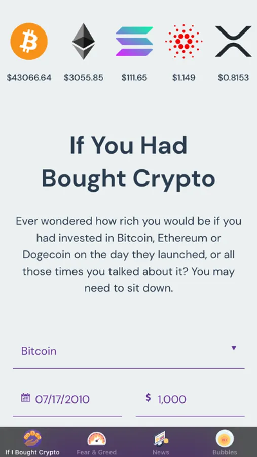 Crypto Index & News is an all in one app that includes the how rich you would be if you had invested in Bitcoin, Ethereum or Dogecoin on the day they launched, or all those times you talked about it? You can now check how much you would have earned. The app also includes the live fear and greed index explained with historical line graph and all parameters explained.