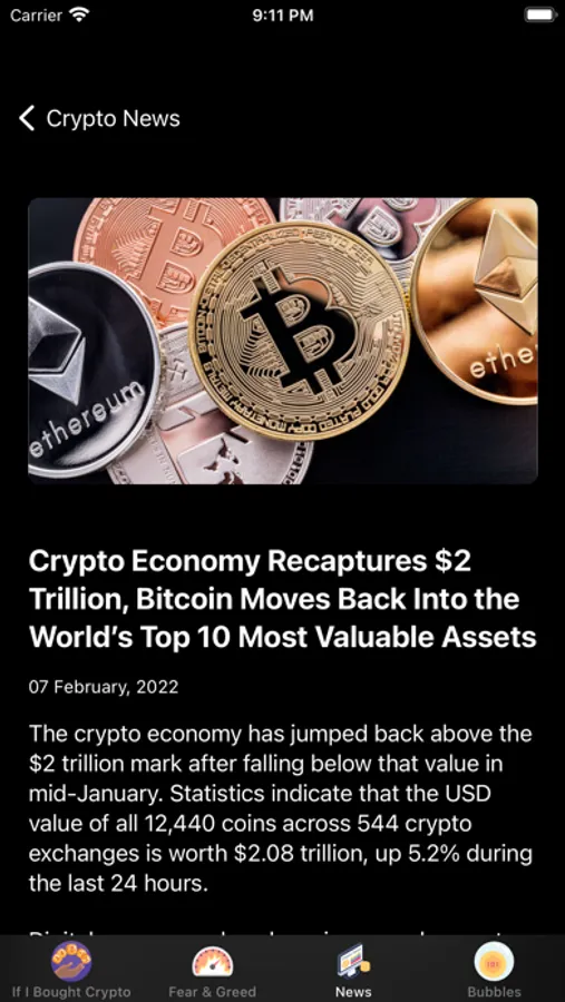 Besides all that the app includes a crypto news aggregator that you can trust. The best sources from around the world, all in one place. The news provides you reliable information. Get access to the latest crypto news affecting business, coin market cap, trading and investing. All news are updated on a daily basis.