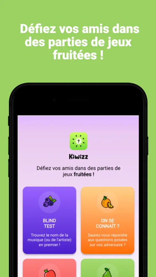 Défiez vos amis dans des parties de jeux fruitées ! Blind tests, Petit bac et bien d'autres jeux indémodables !