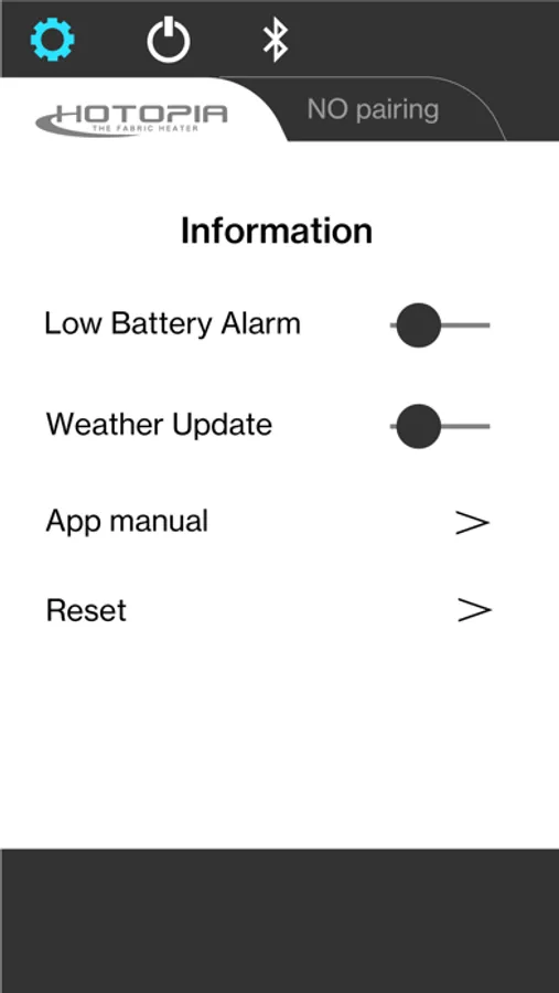 身に着けるHOTOPIAヒーター専用の「LMバッテリー」を制御をするためのアプリケーション。