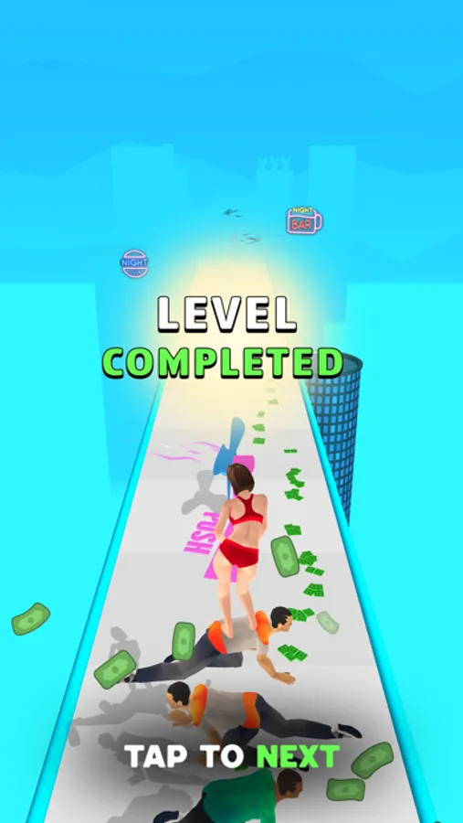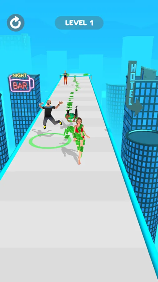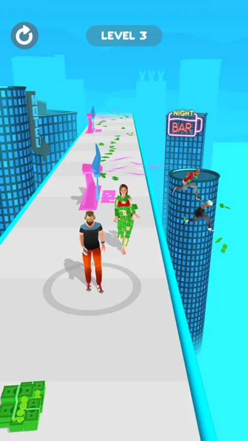 Scatter the money and chase the young men. All of them will be following the coins you left. Time to take them to their happy homes!