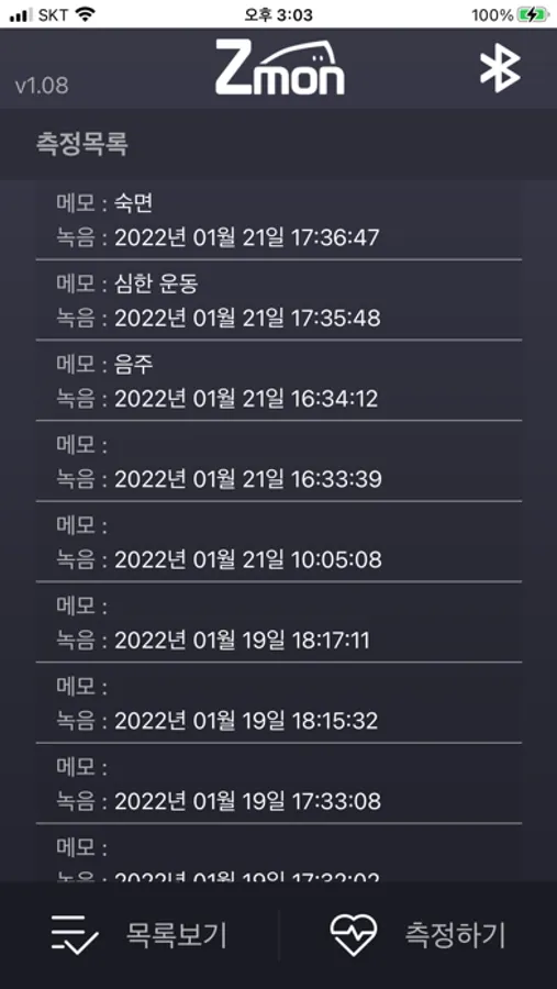 - 녹음 전 스마트폰과 센서 장치의 배터리 상태를 확인해주시기 바랍니다.