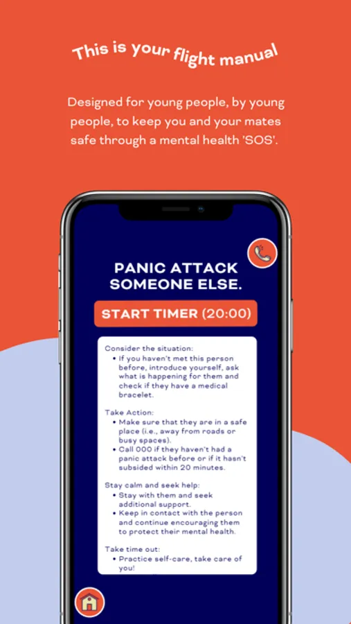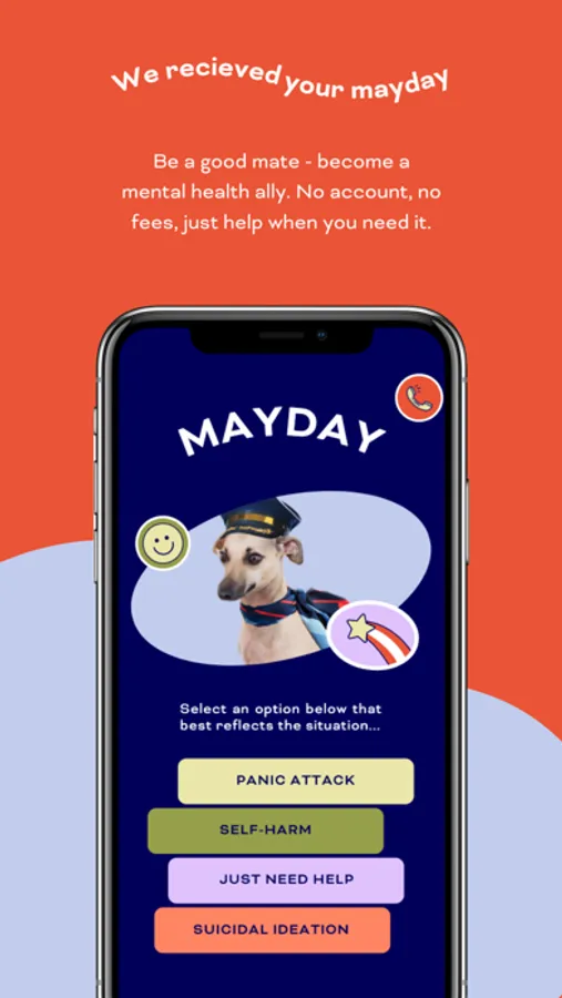The Mayday app acts as a real-time, pocket-sized crisis buddy to assist its user through various forms of mental health crises or pending crises. It's designed for (and by) young Aussies, to you and your mates safe when facing turbulence, including suicidal ideation, panic attacks and self harm, as well as general 'maydays'.