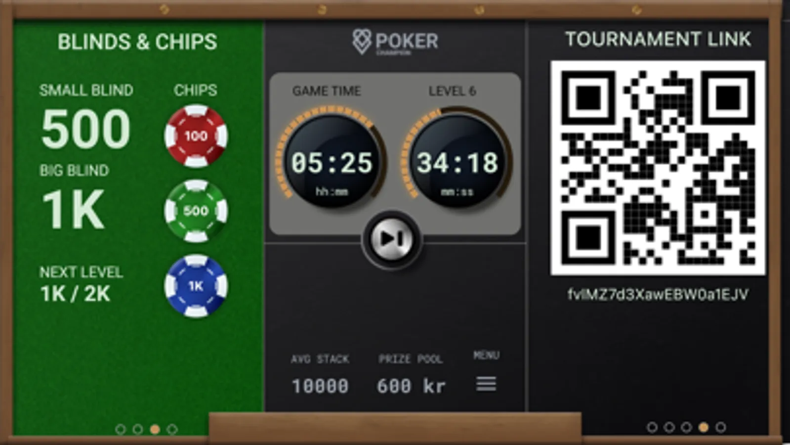 Lets any player run the app on his own phone. Supports stack updates in order to give players and viewers an ongoing indication of the standings.