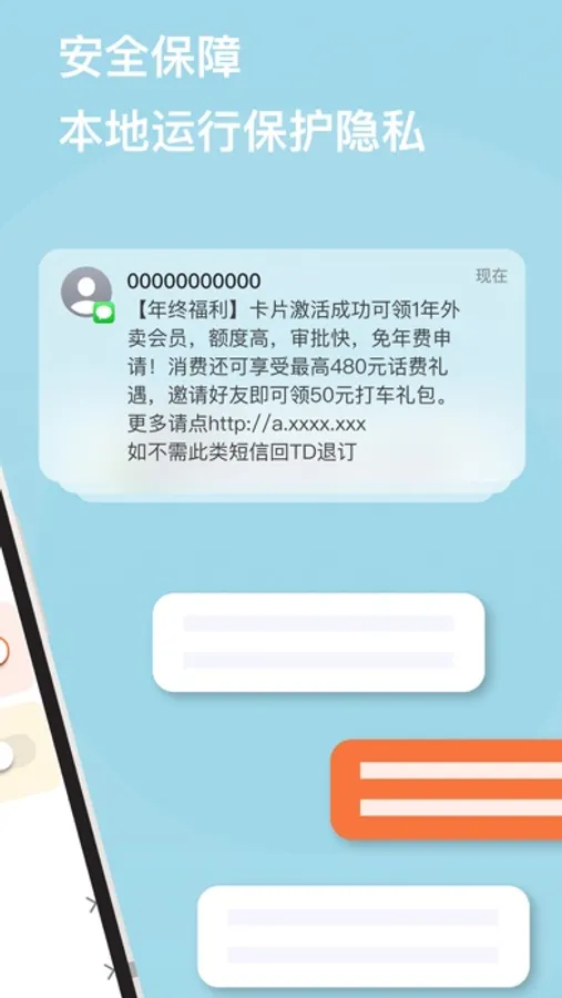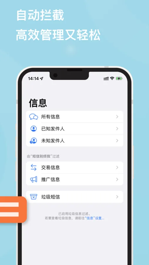 使用机器学习智能识别垃圾短信,无需任何手动设置,后台自动拦截。