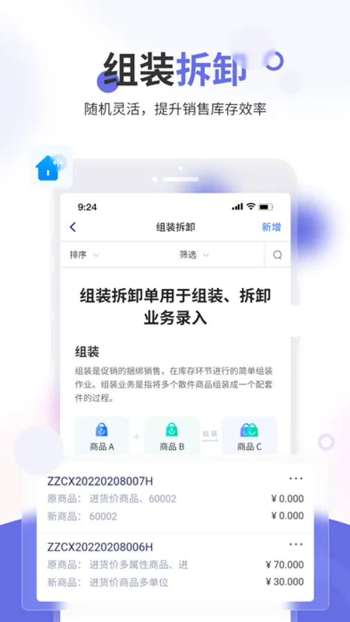 4、组装拆卸管理:支持促销的捆绑销售,或把成品拆卸成子件销售;按需使用、随机灵活,提升销售及库存环节效率;