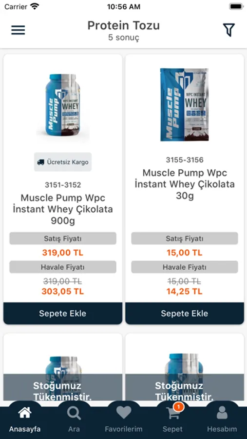 * Ürün kategorilerinde filtreleme yapabilirsiniz.