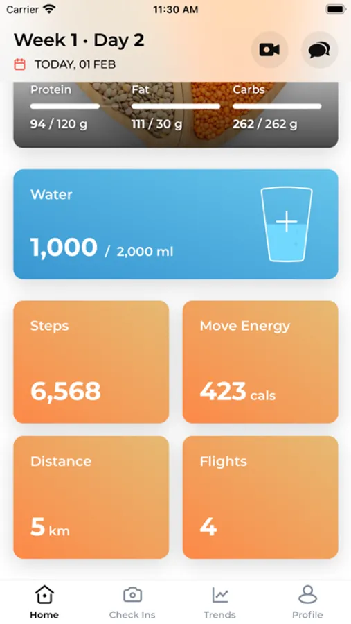 The app integrates with Apple Health to show your daily activity - distance, steps, active energy, and flights to help you better achieve your goals.