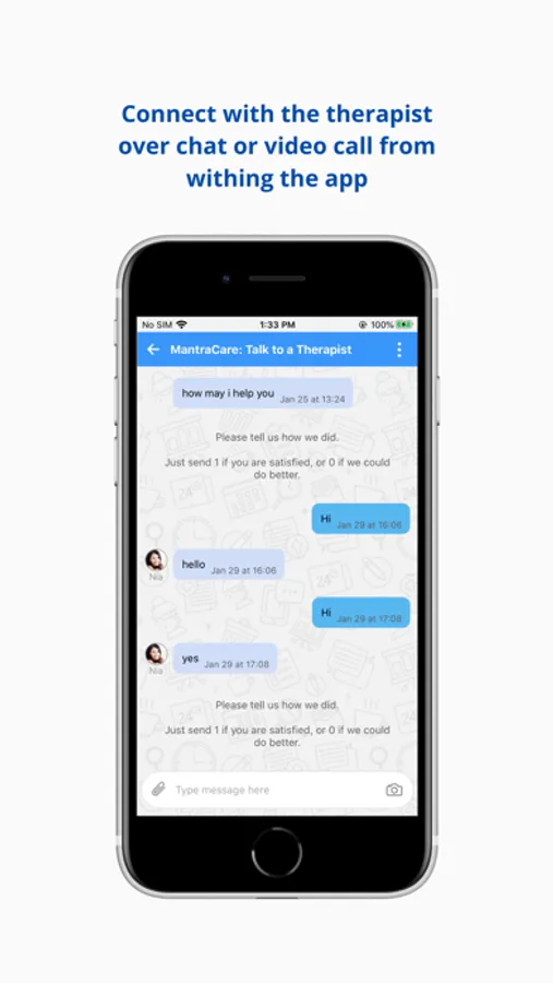 After filling out our questionnaire, you will be matched with a licensed therapist (https://therapist.therapymantra.co/) based on your needs and preferences. You and your counselor will get your own secure and private “therapy room” where you can message or video call your counselor at any time wherever you are.
