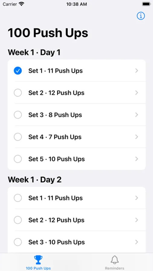 This is a program to train the body to do 100 consecutive push ups in less than two months. The rules are simple: take 1 or 2 days of rest after a push up day and rest at least 60 seconds between each set.