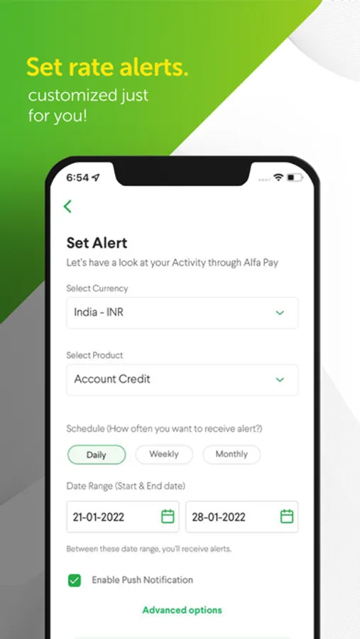 • Receive rate alert push notifications