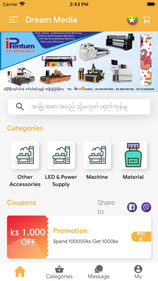 Dream Media is the leading online Shopping and Advertising Machines & Materials selling in Myanmar! We take great care in offering highly attractive products at best price.