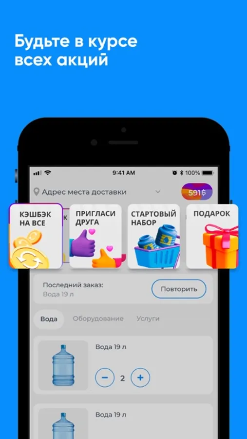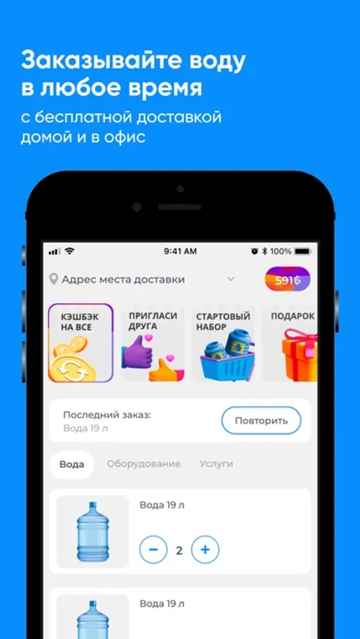 Водный мир — это сервис для заказа свежей питьевой воды и комплектующих.