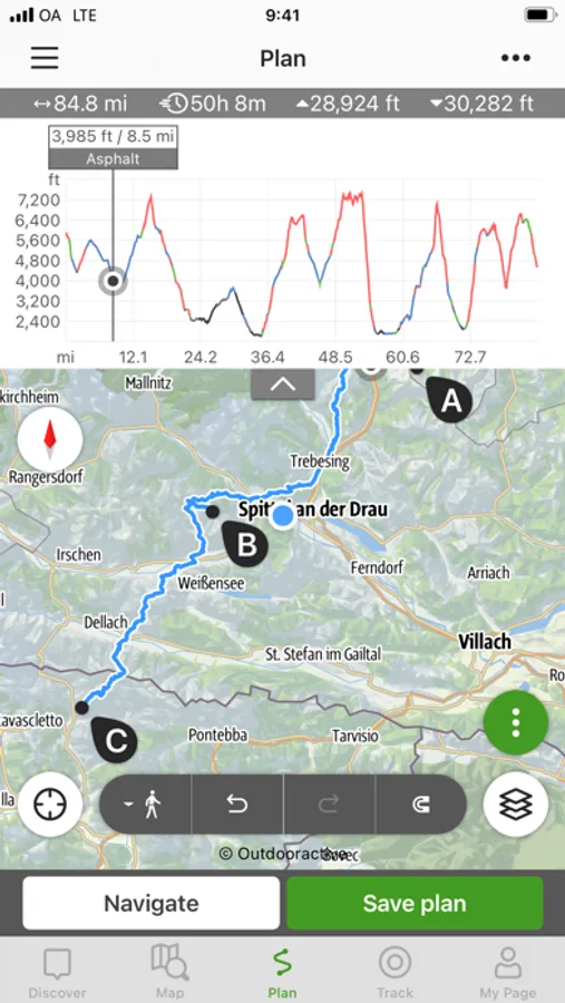 The tours/stages, including all tour details and relevant map sections, can be stored on a smartphone and can be accessed offline, if required (for example, if you are in another country, in areas with weak network coverage, or when data roaming would be too expensive).
