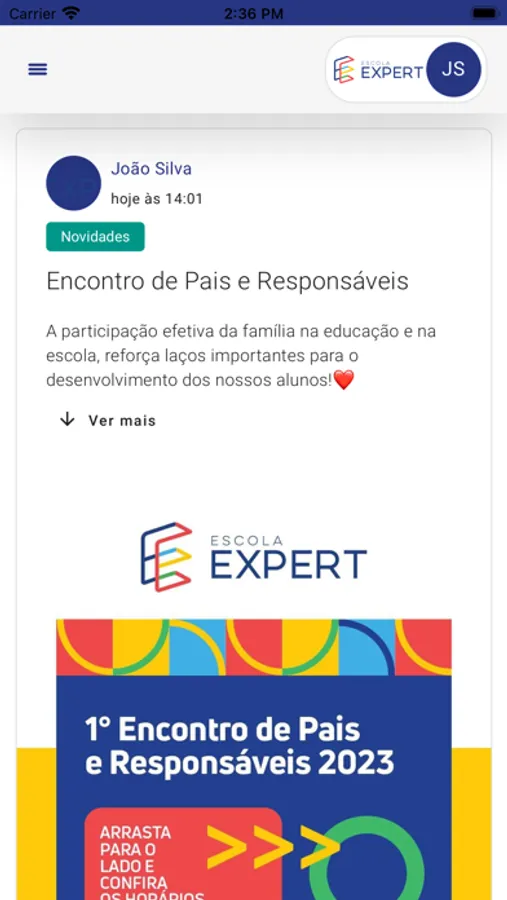 O Escola Expert é um aplicativo que aproxima a escola aos alunos e responsáveis, com as notificações de avisos, ocorrências e notícias para que os alunos e responsáveis estejam constantemente em dia com o cotidiano escolar.