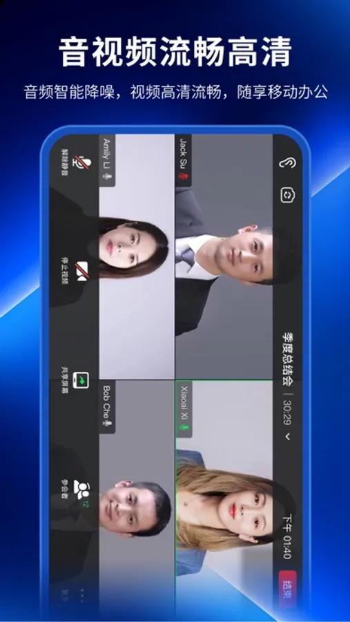 高清视频流畅:流畅的视频配合优秀的音频能力,犹如面对面开会,隔屏如面。