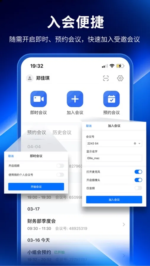 入会操作便捷:享有更多功能,可以一键预约发起会议,或加入会议。