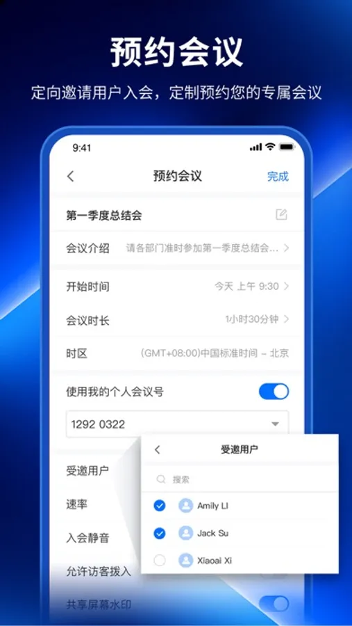 完善会议管理:完备的会议控制功能,主持人可以轻松、有序地管理会议。
