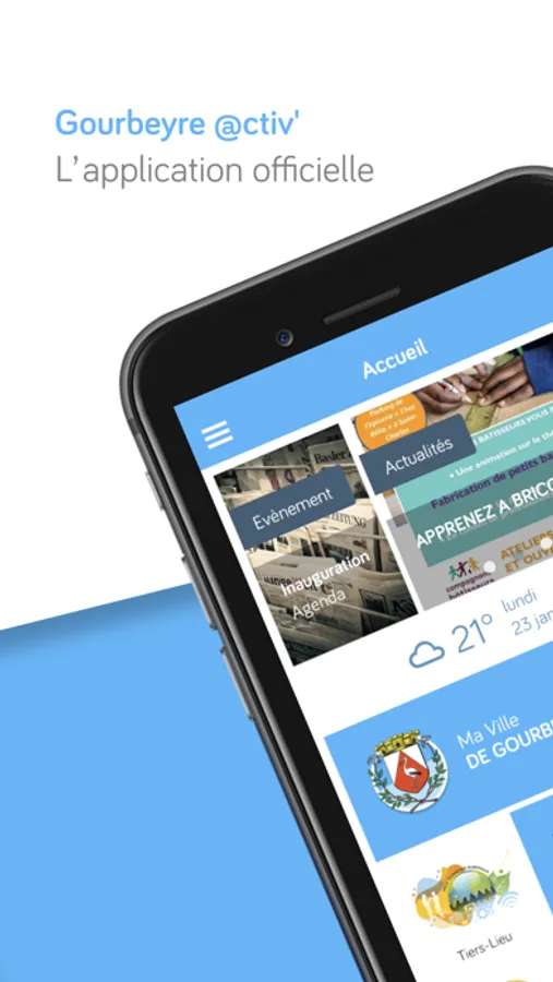 Avec ses nombreuses fonctionnalités, vous pourrez avoir accès à toutes les informations concernant votre ville, connaitre les évènements et dernières actualités, trouver un lieu ou une adresse et bien plus encore.