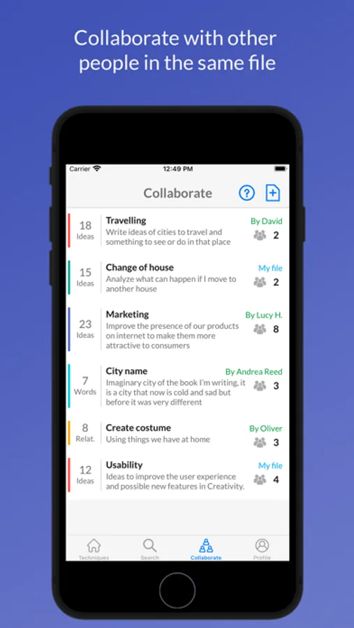 With this application you can use various tools and techniques to originate and develop new ideas in a creative way.