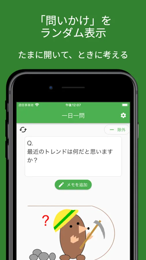 ・メモが書けなかった場合は、別の質問を考えて本アプリに登録してみます。