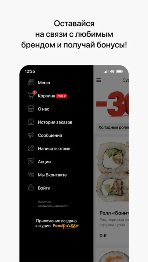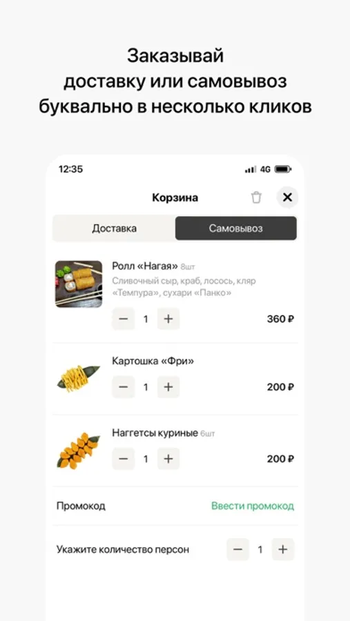 — Быстрый заказ с мгновенным подтверждением через приложение.