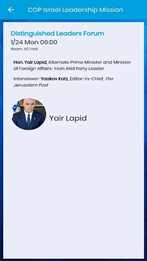 This app allows you to see the COP daily program, see the speakers resume, upload requests to the organizer's team, see the pics from the COP mission 2022 and receive push notifications from the organizer's team