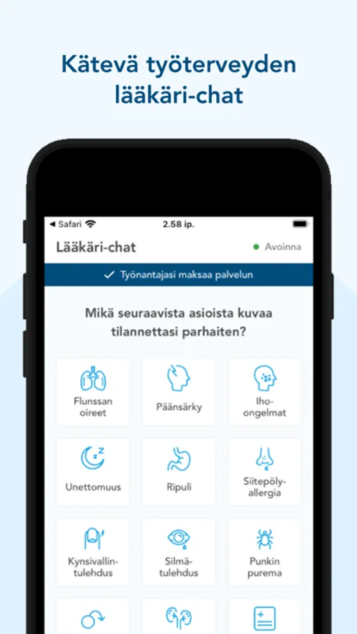 Nyt on ladattavissa ensimmäinen versio, jossa lääkärichat on käytössä ainoastaan Aavan työterveysasiakkaille. Kaikki muut toiminnot ovat kaikkien asiakkaiden käytössä. Chat henkilö- ja vakuutusasiakkaille on tulossa pian.