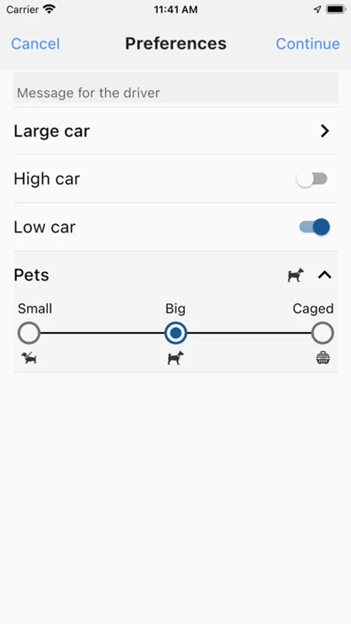 - Puoi scegliere alcune opzioni per personalizzare il tuo viaggio in taxi