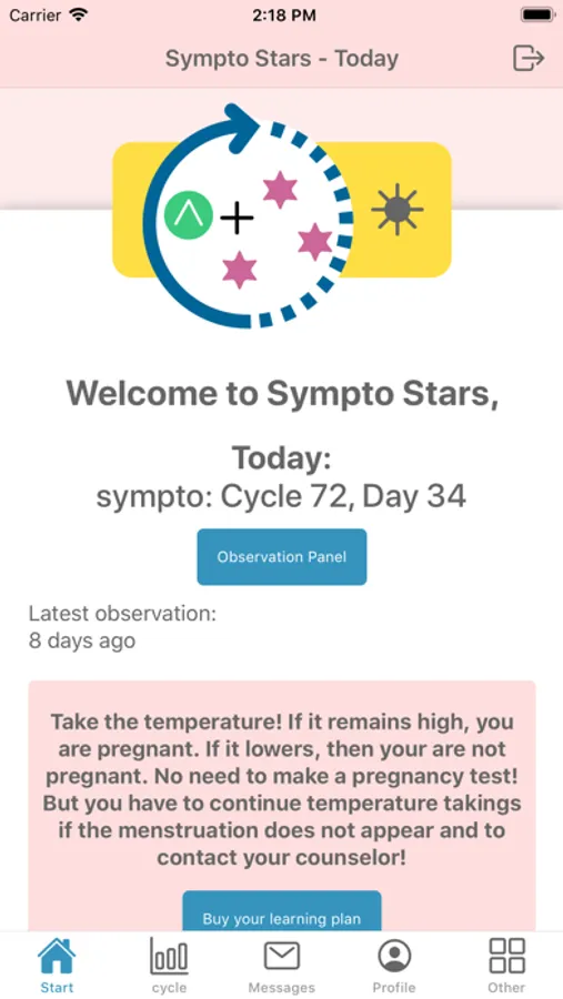 - Sympto Stars offers modes for different cycle situations: pregnancy, breastfeeding and perimenopause.