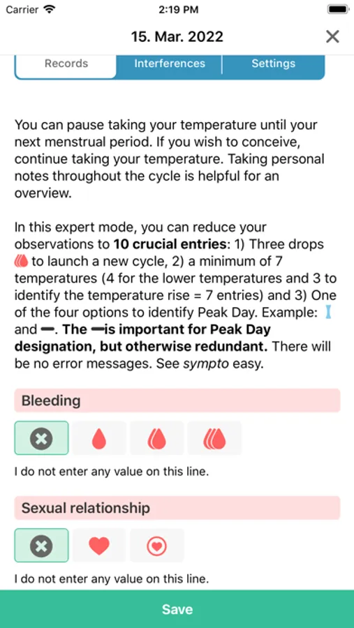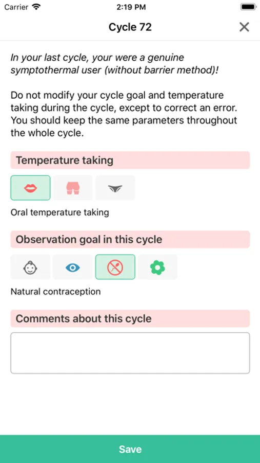 - Easy-to-use icons that represent your cervical fluid observations in categories relevant to your fertility status.