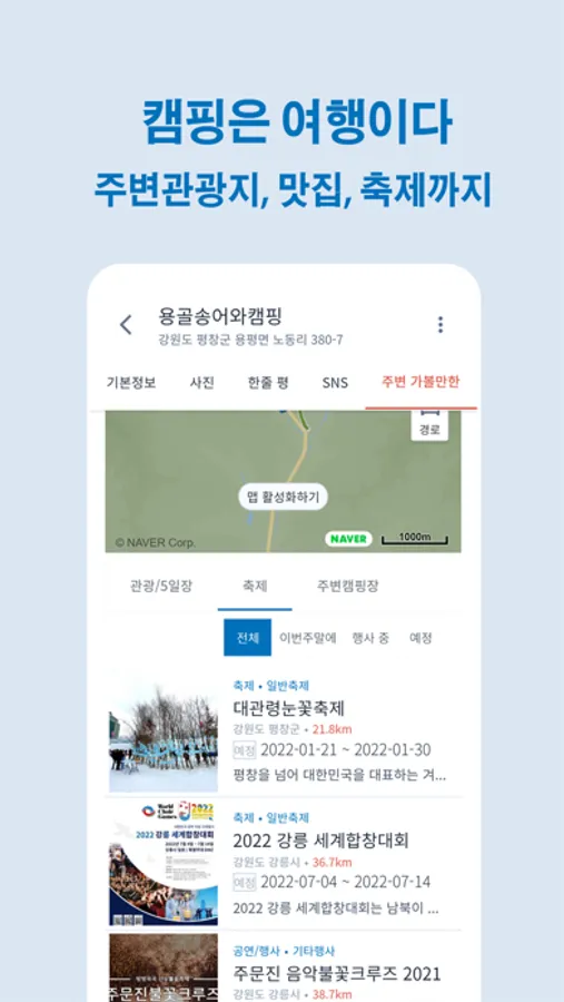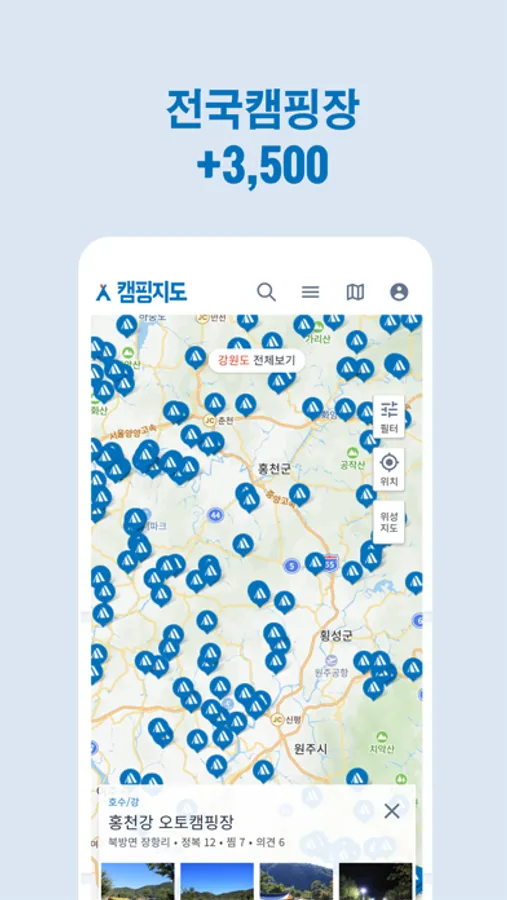 - 대한민국 최대 캠핑장 정보 수록(3500여개)