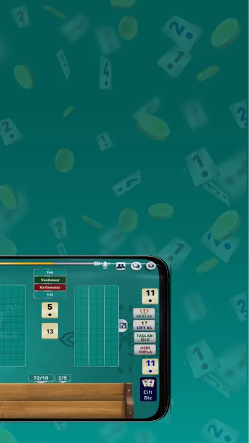 Now you can have a voice communication with your friends while playing 101 table game. 101 Muhabbet offers a unique voice communication experience while playing 101 table game with your friends or opponents. You can also mute your own voice or the voices of your opponents with a single button whenever you want.