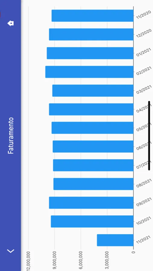 Faturamento período - Valores do faturamento mensal no período dos últimos 12 meses