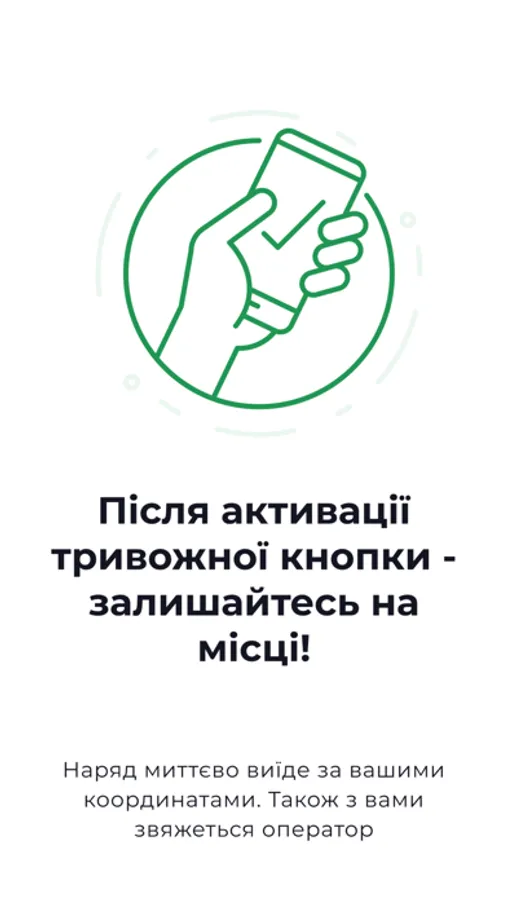 Після натискання кнопки СОС у додатку, сигнал миттєво надходить на пульт охорони. Протягом 30 секунд оператор передає інформацію екіпажу.