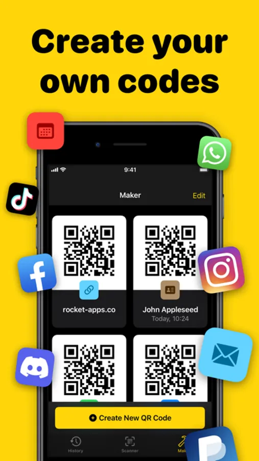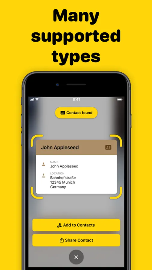 - A wide range of types: Contacts, URLs, Phone, Location, Wifi, Mail, etc