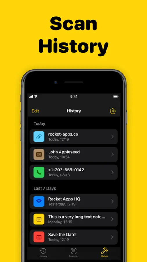 - Scan all types of QR codes like links, contacts, events, locations, Wifi and many more