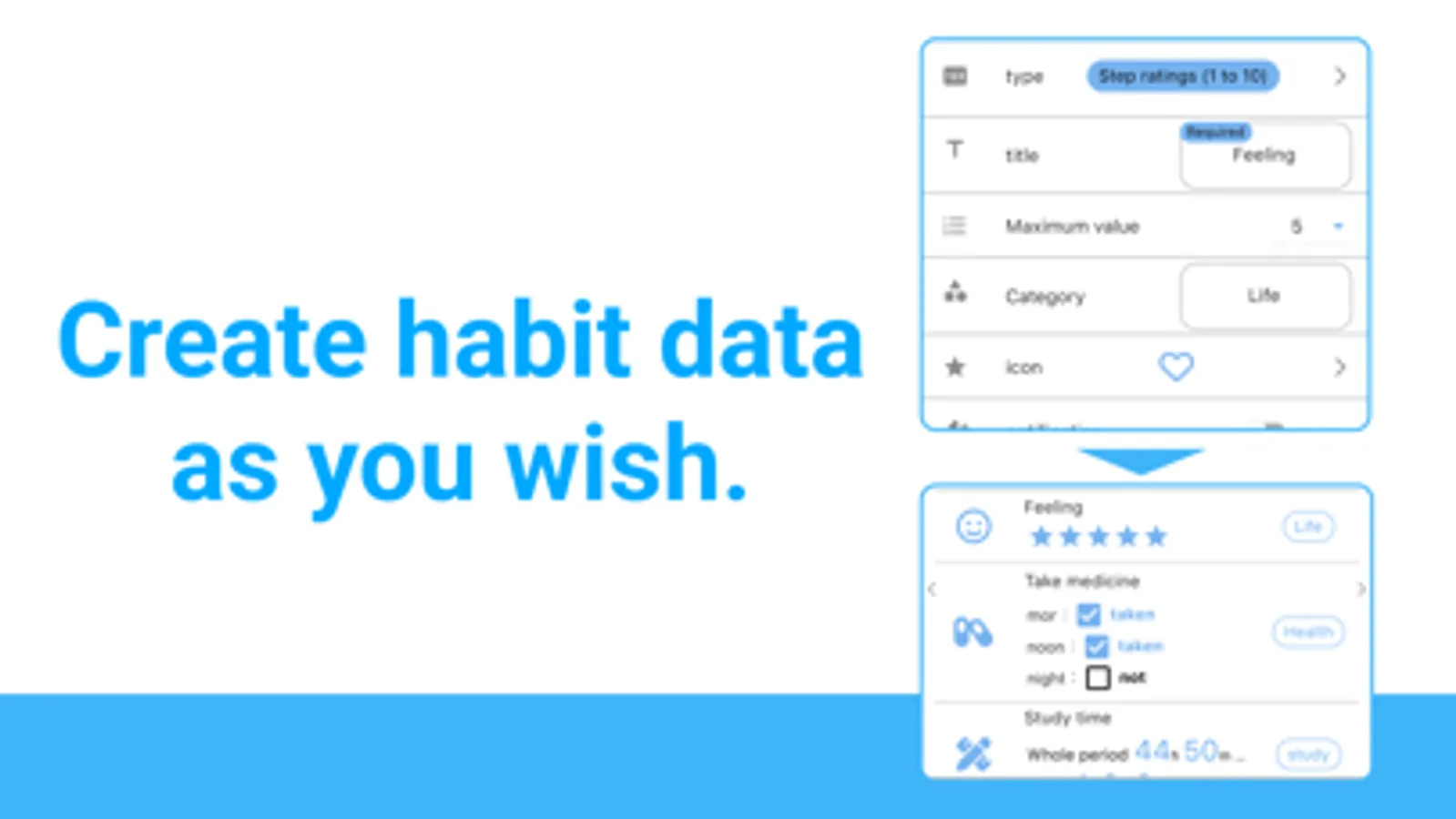 Select the data type (number, checkbox, accumulated time, text, etc.) for each habit.