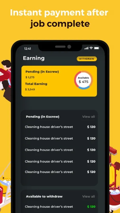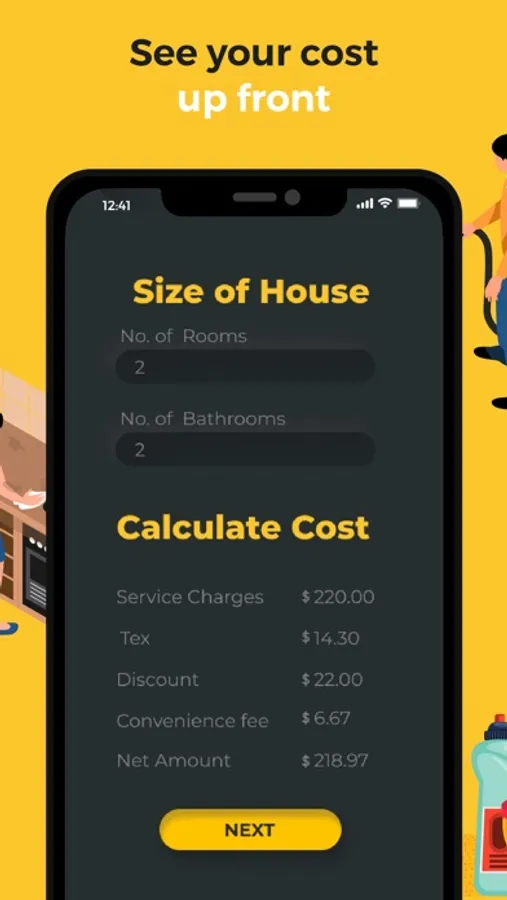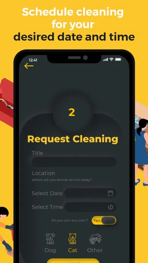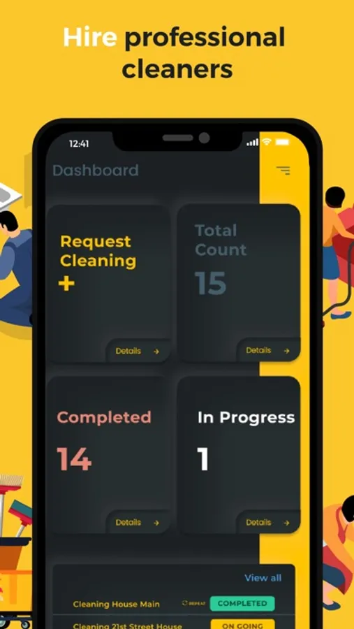 Tap on The CoBuilder icon on your phone to submit a cleaning request. Toilet cleaning for as low as $30 and cleaning a small apartment for as low as $100. You will receive instant status updates on your phone about your order.