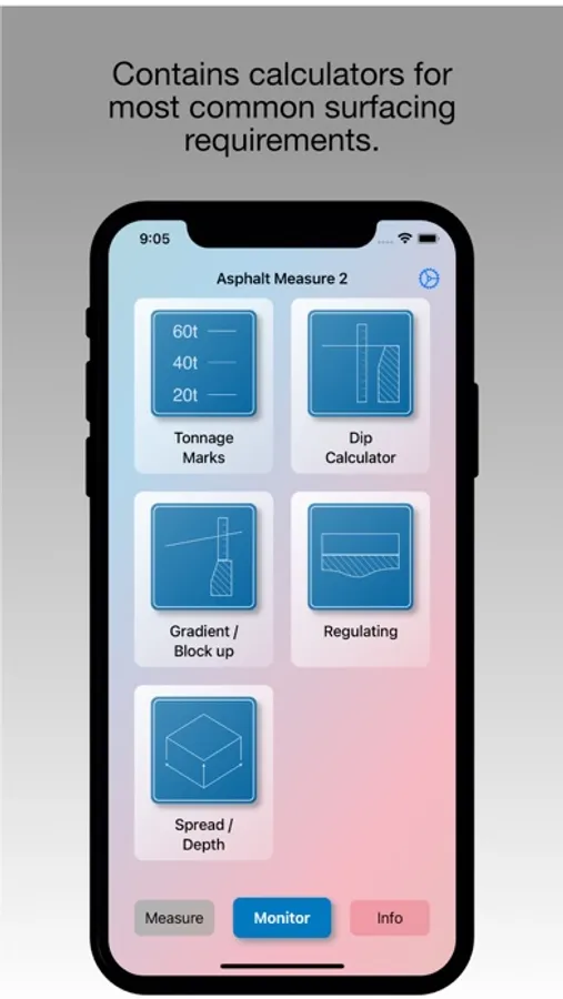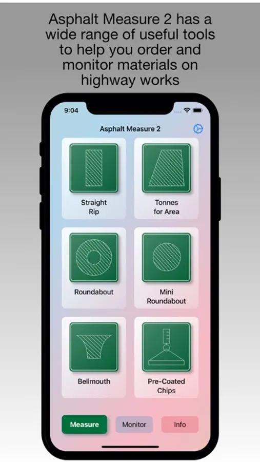 Asphalt Measure uses built in formulas to provide volume and area solutions using the minimum number of input values. It is designed to be used by individuals in the highways industry.