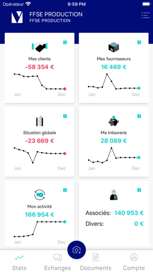 Notre application vous permet de piloter votre business en temps réel et de rester connecté en permanence avec votre expert-comptable. Elle vous permet non seulement de visualiser l’ensemble de votre comptabilité mais également de communiquer avec l’équipe de notre cabinet qui reste à votre service au quotidien via la messagerie dédiée, de déposer des documents sur le web ou via l’application etc